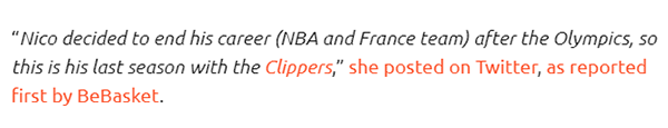 24直播网08月16日讯,巴图姆的妻子透露,巴图姆决定在奥运会后结束职业生涯(包含NBA和法国国家队),所以新赛季为快船效力将是他的最后一个赛季;换言之,巴图姆将在明年退役,结束他的整个职业生涯。