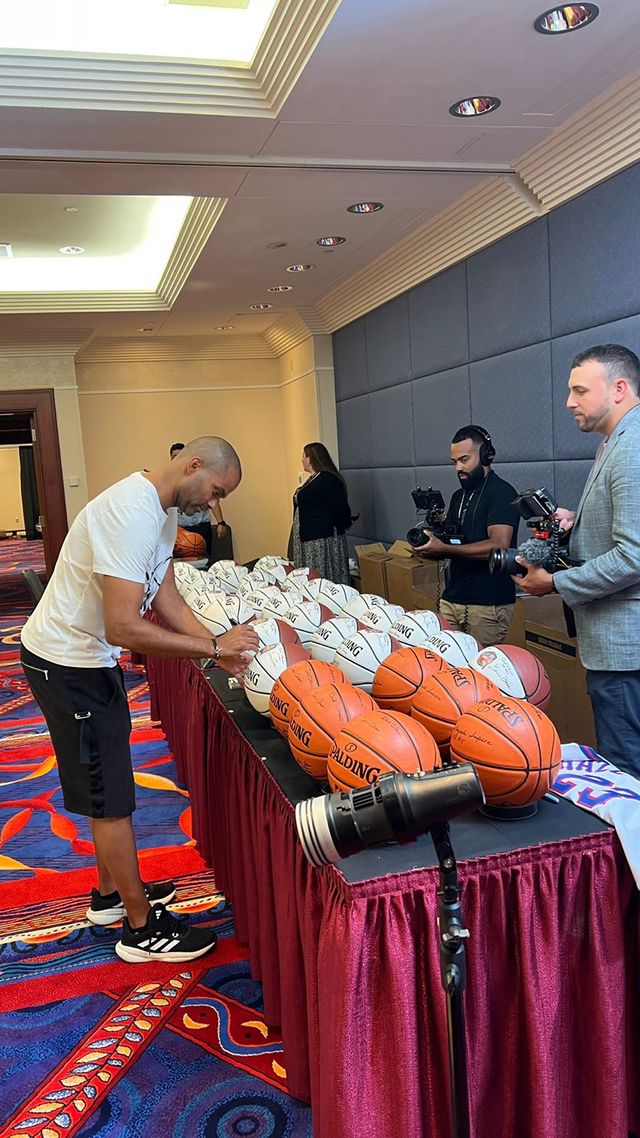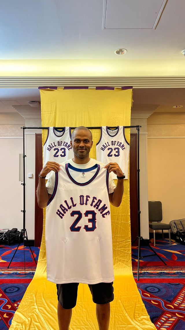 帕克已经来到名人堂仪式的举办地,他在社交媒体上展示他的23号荣誉球衣,球衣前面写着23、名人堂,后面则写着帕克和23字样,帕克还在很多篮球上签名。
