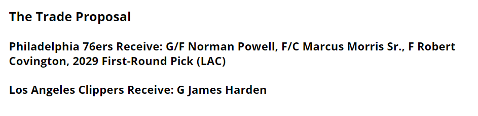 美媒晒出了一个新的4换1方案,认为快船和76人都有可能最终接受,这笔方案是快船送出鲍威尔、莫里斯、科温顿和2029年首轮签,从76人得到哈登。大家认为哈登最终会披上快船的球衣吗?