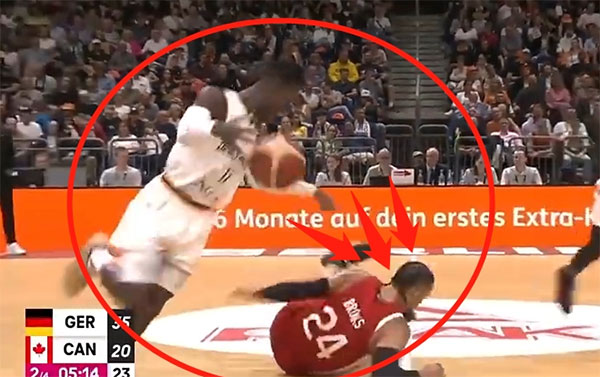 来源:24直播网08-10 17:2524直播网讯08月10日,FIBA热身赛德国86-81击败加拿大,湖人旧将施罗德全场拿到16分8篮板7助攻,带队击败看起来很强大的加拿大;比赛期间,施罗德嘲笑狄龙-布鲁克斯一幕曝光,后者扑抢失败摔倒在地,施罗德伸出手指嘲笑他。