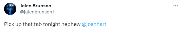 哈特续签8100万!布伦森让其请客并晒偷拍视频 大桥:借我1美元