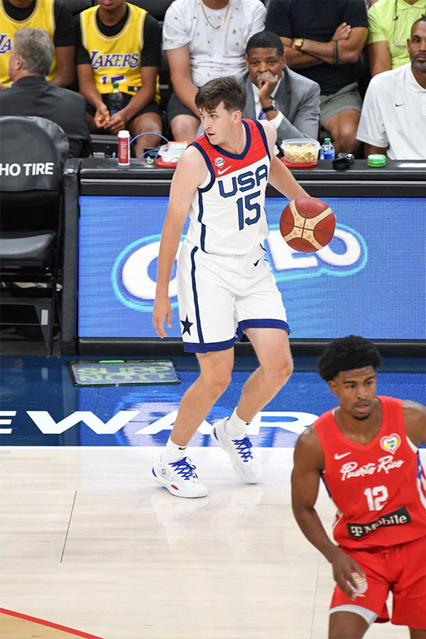 与波多黎各一战,美国男篮安排布里奇斯、英格拉姆、爱德华兹、布伦森和小贾伦-杰克逊,赛前里夫斯获得全队最高的欢呼声;比赛正式开打,美国队2-6开场后打出8-2攻势反超比分,之后两队僵持,第一节3分14秒,湖人新星里夫斯替补上场,现场球迷为他鼓掌欢呼,里夫斯上场就得分——命中底角三分以及急停干拔,首节贡献5分。