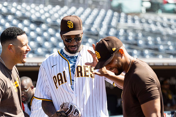 近日小卡曾带着女友坐在场边看比赛,今天小卡来到圣地牙哥教士队的球场,戴着墨镜穿上该队的球衣,小卡露出笑容又笑了,该队官推晒照并且写道:有趣的家伙。
