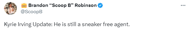 可之后名记Brandon Robinson报道,欧文表示他仍旧是一位球鞋自由球员,这不是一个合法的网站,换言之,欧文正式签约安踏可能出现闹乌龙事件。