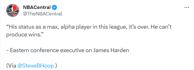 一位联盟高管表示:关于他可能回火箭的传闻一直存在,但我的理解是,这只不过是种谈判手段。哈登知道76人不会给他顶薪合同,他不再是一名顶薪球员,但是他希望费城让自己回来,并愿意给自己顶薪。