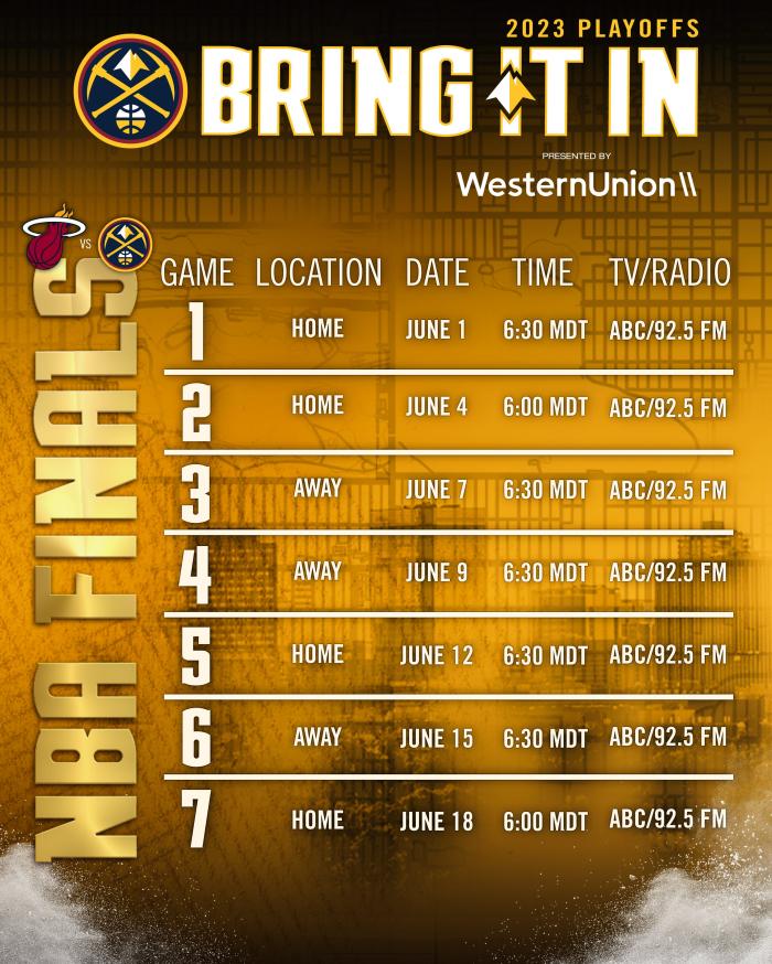 掘金全队以逸待劳,他们比热火多歇了一周,直到总决赛G1开打,掘金足足获得10天的休息,掘金官方晒约基奇对位巴特勒的赛场照,并且宣战总决赛见;掘金公布今年总决赛的具体赛程,如下(均为北京时间):