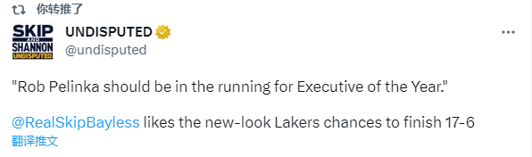著名詹黑Skip Bayless表示湖人有机会17胜6负(最后23场的战绩)结束赛季,佩林卡应该加入年度最佳高管的竞争之列。