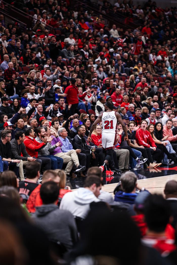 现场DJ介绍贝弗利入场时,全场球迷为他欢呼鼓掌;贝弗利搭档德罗赞、拉文、卡鲁索和武切维奇首发出战,比赛正式开打,公牛19-8开场打爆篮网,贝弗利强突扛着布里奇斯,摔倒仍把球打进并且造犯规,可惜罚球没进;公牛火力十足,第一节33-18领先15分。