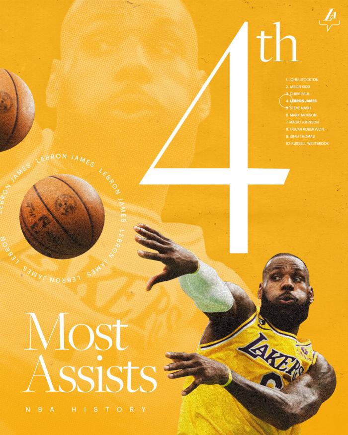 1、詹姆斯生涯助攻总数正式超越马克-杰克逊和史蒂夫-纳什,升到历史助攻榜第4位