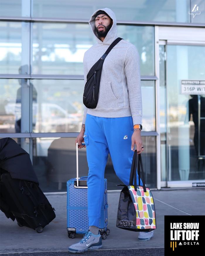 根据赛程,湖人下一场将挑战凯尔特人,目前湖人众将已经飞往波士顿,38岁詹姆斯表情严肃,一手拿着证件、一手提着包包,身穿短裤和短袖,湖人全队就老詹一人穿着短裤短袖;浓眉身穿运动装,同样一脸严肃;威少、八村垒和威少等人则满脸笑容。