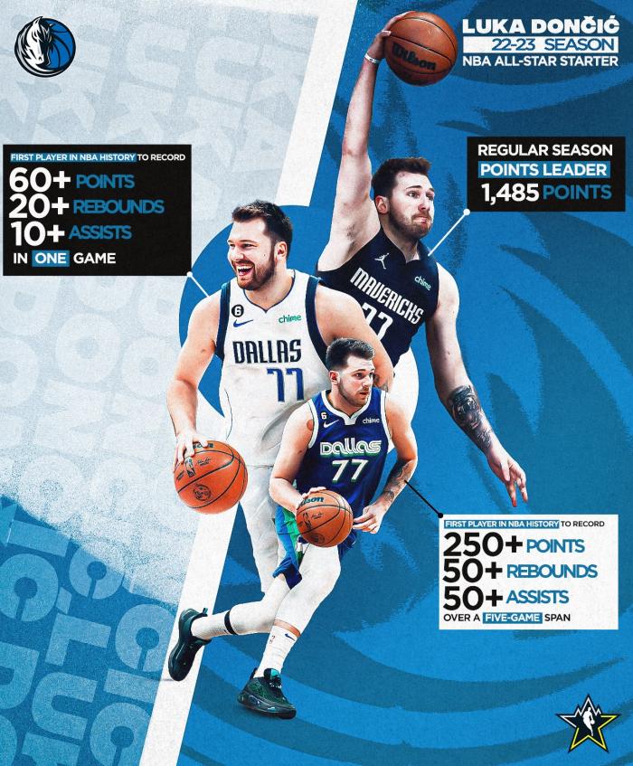 今天NBA官方公布了2023年全明星首发阵容,东契奇搭档库里成为西部全明星首发后卫,西部另外三位首发分别是詹姆斯(队长)、锡安和约基奇,东契奇生涯3次首发出战全明星,超越诺维斯基成队史首发次数最多的球员;东契奇才入选全明星首发就不幸崴脚受伤,但愿他的伤势无大碍。
