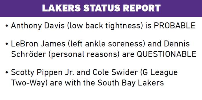 你的位置: 24直播网 篮球直播 NBA 湖人官宣最新伤情:詹姆斯左脚踝受伤出战成疑 浓眉大概率带伤出战
