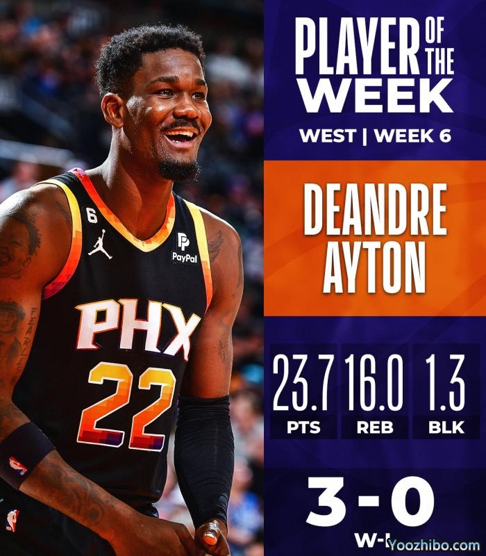 艾顿本赛季首次夺得西部周最佳,也是生涯首次获此殊荣;太阳官方第一时间恭喜艾顿;目前太阳13胜6负排在西部第二,艾顿场均按到16.2分9.5篮板2.2助攻0.8盖帽和0.6抢断。