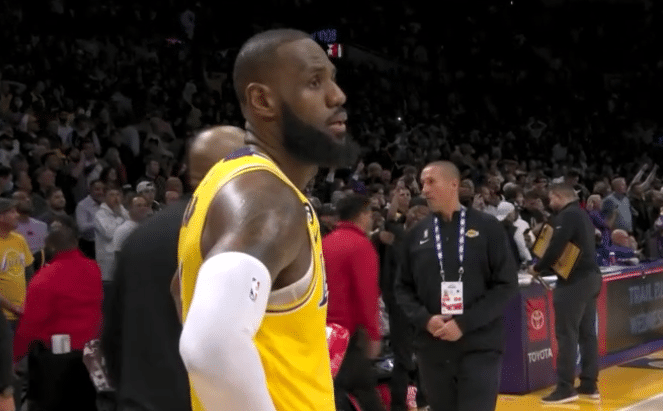 湖人惨遭压哨绝杀,詹姆斯和浓眉都站在球场上并且抬头看向计时器,似乎不敢相信眼前发生的这一幕,他们内心的不甘和落寞都写在脸上,之后詹姆斯沮丧地走回更衣室。