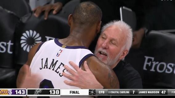 赛后,马刺主帅波波维奇谈到詹姆斯,表示:勒布朗是如此特别,非常特别,太特别了。