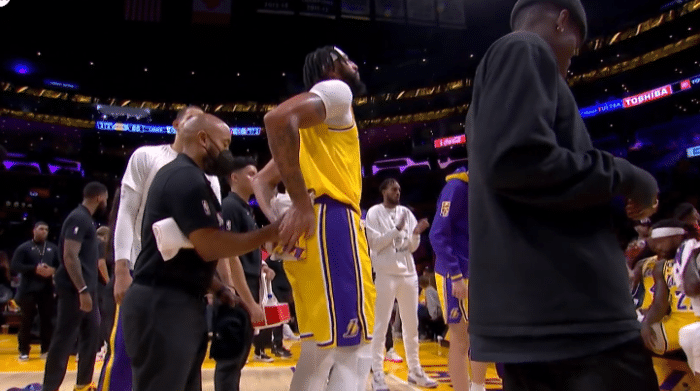 湖人惊险一幕:浓眉重摔倒地险受伤并接受治疗 小卡第一时间关心他