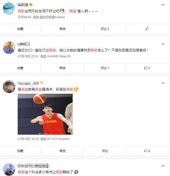 对于吴前来说,也是很尴尬,本身在这一期的中国男篮比赛中,他的整体发挥就相对一般,被不少球迷批评。没想到的是比赛之后回国,还以这样的一种方式躺枪,虽然只是同音不同字,但是可以看到有不少人在抨击吴亦凡的时候都打成错别字,用的是吴前。