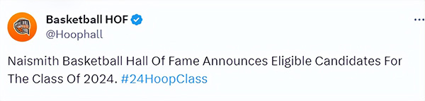 24直播网12月22日讯 ,奈史密斯篮球名人堂官方今日公布了2024年名人堂首批候选者名单,一共有151位球员、教练、篮球从业者和团队进入首批候选名单。