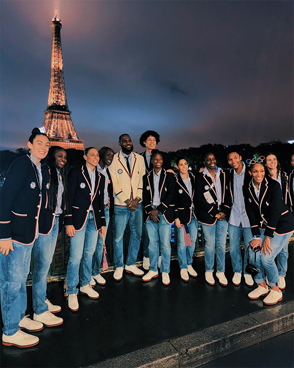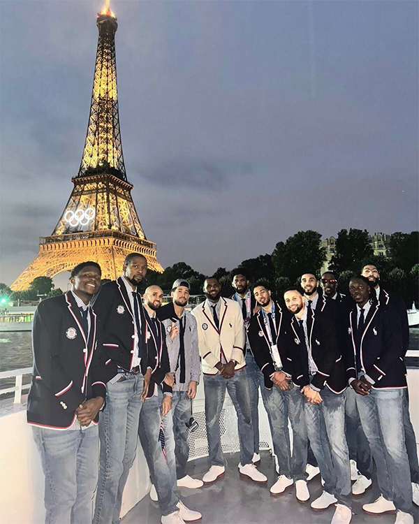 詹姆斯领衔 美国男篮巴黎奥运会埃菲尔铁塔前合影