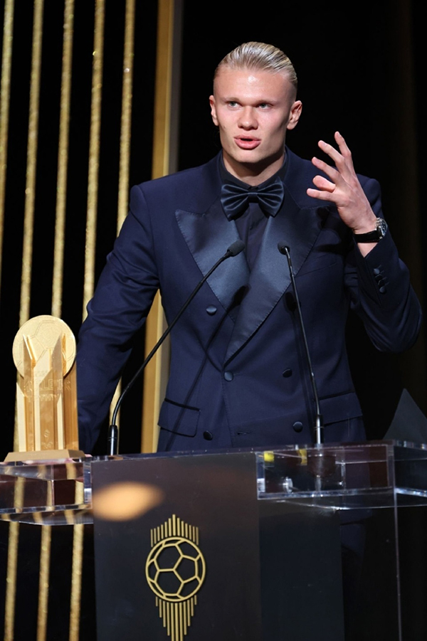 在本年度的金球奖评选中,梅西凭借世界杯夺冠获得他的第八座金球奖,而哈兰德尽管上赛季帮助曼城夺得欧冠、英超和足总杯成为”三冠王“,他本人也包揽了欧冠、英超和欧洲三大金靴共计打进52球,但依然非常遗憾地在与梅西的竞争中,屈居第2位,成为梅西8夺金球的又一位“绿叶”。