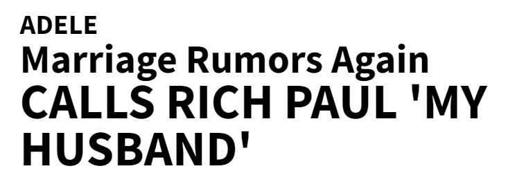 阿黛尔疑似透露他已经和里奇-保罗秘密结婚了,究竟是口误还是事实?TMZ团队已经联系阿黛尔团队进行澄清,目前还没有得到回复。