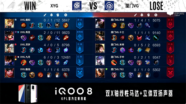 开局厦门VG伽罗中路抢线。2分22秒厦门VG抢到暴君,团战XYG打出1换2。4分14秒厦门VG拿下主宰。4分34秒XYG摧毁敌方发育路外塔。4分55秒XYG野区击杀东皇太一。6分06秒XYG摧毁敌方中路外塔。6分43秒野区团战双方游走互换,XYG拿下暴君。8分27秒XYG拿下主宰。9分48秒对抗路团战厦门VG打出1换4。11分36秒XYG暴君处打出0换3。11分56秒XYG拿下暗影暴君。12分13秒XYG摧毁敌方中路二塔。14分26厦门VG中路打出2换4。14分59秒厦门VG摧毁敌方对抗路高地塔。15分36秒中路团战XYG打出2换3。16分07秒XYG摧毁敌方中路高地塔。16分32秒XYG拿下暗影暴君。16分57秒厦门VG拿下暗影主宰。19分38秒对抗路团战厦门VG打出2换3。19分58秒厦门VG摧毁敌方水晶拿下比赛。