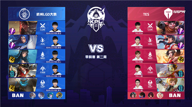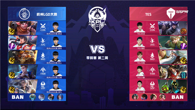 24直播网 3月18日2021KPL春季赛季前赛第二周第一日比赛,由杭州LGD大鹅对阵TES,以下是本场比赛快讯。