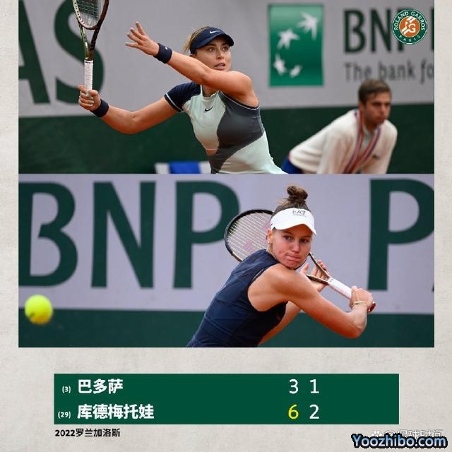 2022法网女单第3轮 巴多萨vs库德梅托娃 全场录像回放
