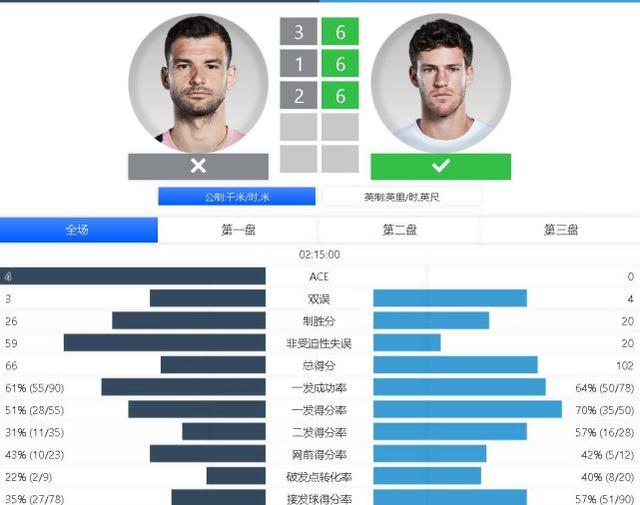 第三盘迪米开局连保带破,取得了2-0的领先。此后施瓦茨曼发力连下6局送出隐形蛋,6-2拿下第三盘。