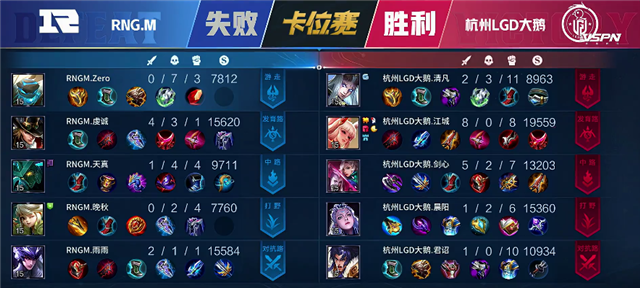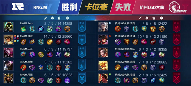 RNG.M选用:鲁班大师、周瑜、狄仁杰、赵云、老夫子