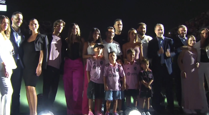 梅西亮相仪式!小七可爱,安东内拉笑容满面,贝嫂气场太强了