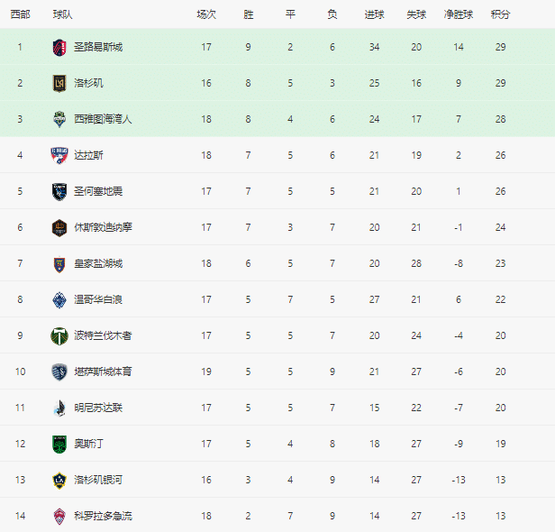 美国职业大联盟分为东部和西部,进行常规赛和季后赛,决出总冠军,赛制和NBA很相似。目前东部第一是辛辛那提,他们17轮拿下40分,稳居榜首,第二名是35分的纳什维尔,他们比榜首球队多赛一场,新英格兰革命和费城联合排名第三和第四。西部榜首球队是圣路易斯城,洛杉矶FC与第一名积分相同,但多赛一场。洛杉矶银河与科罗拉多急流排名垫底。