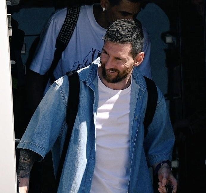 一下飞机后,梅西呼吸着第一口来自东方的口气,竟然咧嘴微笑起来。随后,他坐上摆渡车时,丝毫没有球王架子,自己提着行李箱上车。
