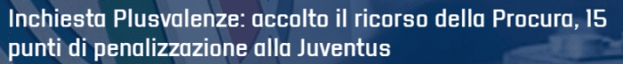 24直播网01月21日讯 ,意大利足协官方宣布,尤文图斯因财务造假被扣除15个联赛积分。