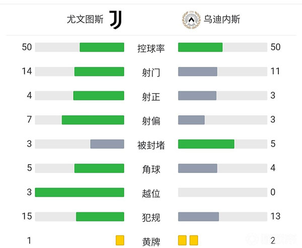 全场比赛结束,最终尤文图斯1-0击败乌迪内斯。