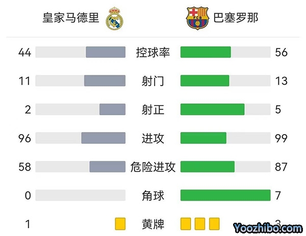 全场比赛结束,巴塞罗那1-0战胜皇家马德里。