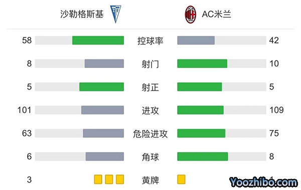 全场比赛结束,米兰2-3不敌萨拉格斯基。