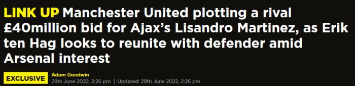 24直播网06月30日讯据talkSPORT电台报道,阿森纳向阿贾克斯开出3500万英镑的报价求购后卫利桑德罗-马丁内斯,而曼联则开价4000万英镑希望截胡。