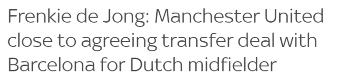 24直播网06月28日讯 天空体育消息,曼联接近从巴塞罗那签下德容,转会费为6500万欧加浮动。