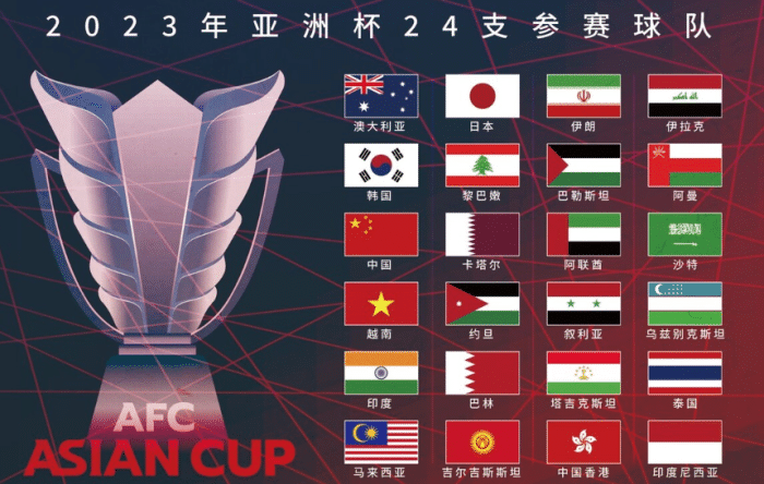 按照现在的世界排名,亚洲杯一档球队为伊朗(世界排名第21),日本(23)、韩国(29)、澳大利亚(42)、沙特(49)、卡塔尔(51);二档球队为阿联酋(68)、伊拉克(72)、阿曼(75)、国足(77)、乌兹别克斯坦(83)、叙利亚(88);三档球队为巴林(89)、约旦(91)、吉尔吉斯斯坦(95)、越南(96)、黎巴嫩(97)、巴勒斯坦(100);四档球队为印度(108)、泰国(111)、塔吉克斯坦(114)、中国香港(147)、马来西亚(154)、印度尼西亚(159)。这些分档情况在正式抽签时将不会有太大变化。