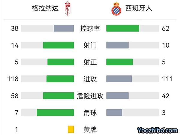 格拉纳达0-0西班牙人 武磊替补登场莫利纳失点