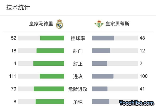 全场比赛结束,最终皇马0-0战平贝蒂斯。