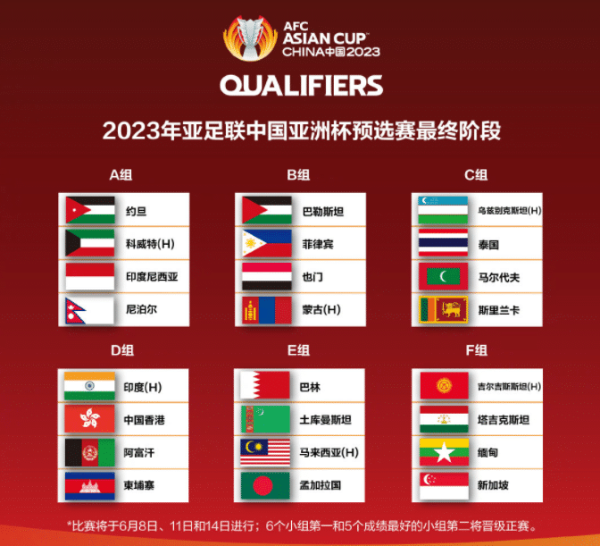 来源:24直播网02-24 20:4424直播网讯 2月24日,2023年中国亚洲杯预选赛抽签出炉,24支球队被分为6个小组,每个小组4支球队,晋级亚洲杯正赛的规则是6个小组第一名和5个成绩最好的小组第二名获得晋级资格。通过预选赛晋级的11支球队,再加上东道主中国队等13支已经确定晋级的球队,一共24支球队出战明年夏天在中国进行的亚洲杯正赛阶段。