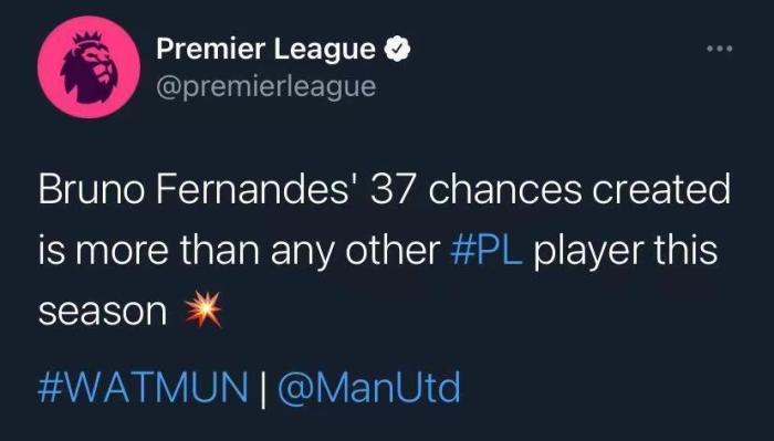 24直播网11月20日讯 ,曼联将在本轮英超客场挑战沃特福德。赛前,据英超官方统计,B费本赛季创造机会数为英超球员第一。