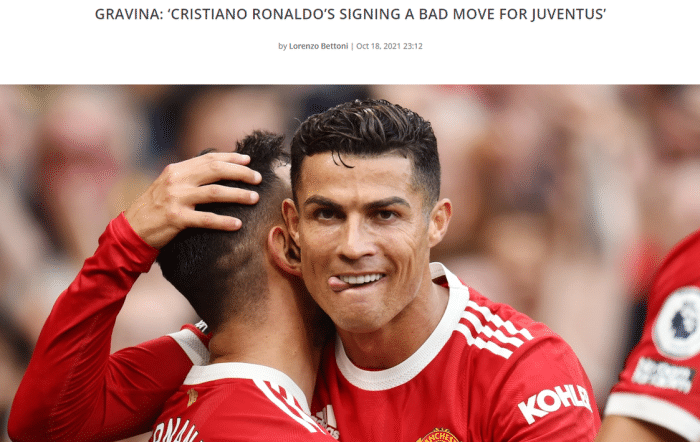 24直播网10月19日讯 足协主席格拉维纳最近接受了足球市场网采访,他表示签下C罗对尤文来说不是一笔好交易。