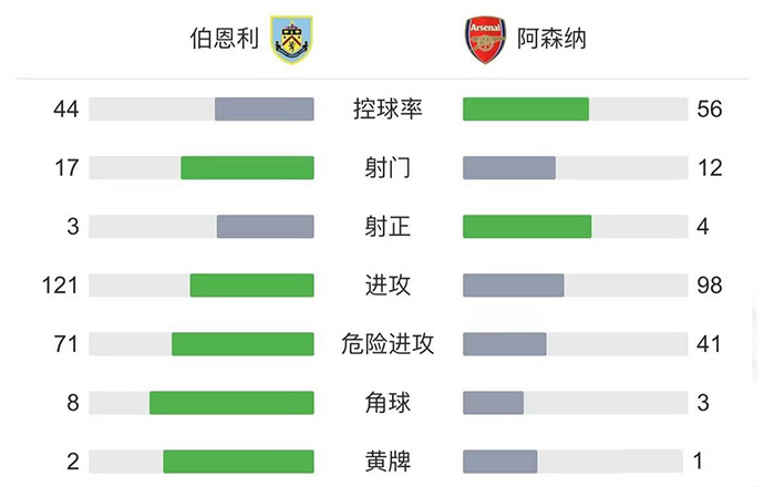 全场比赛结束,最终阿森纳客场1-0伯恩利。