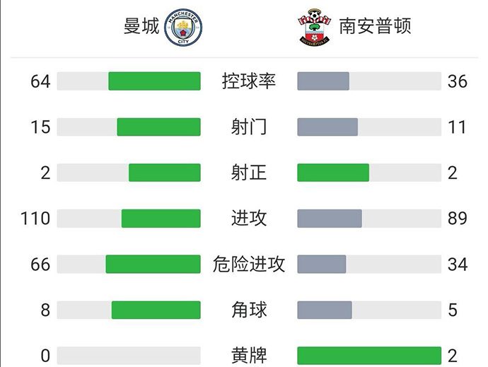 曼城0-0南安普顿 福登补时破门被吹