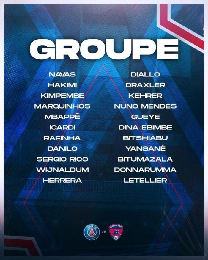 24直播网9月11日讯 今日,巴黎公布对阵克莱蒙大名单,梅西、内马尔、迪马利亚等人缺席。