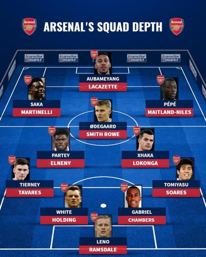 来源:24直播网09-06 19:5224直播网9月06日讯 德国转会市场盘点了阿森纳的阵容厚度,枪手可以排出两套实力强劲的阵容。