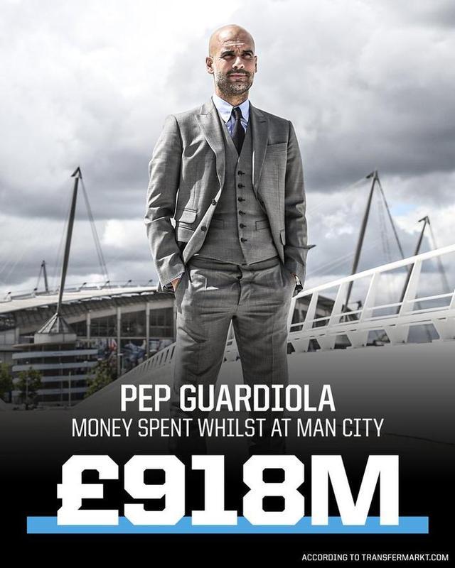 这也意味着,入主曼城以来,瓜迪奥拉已在转会市场上花费了9.18亿英镑。